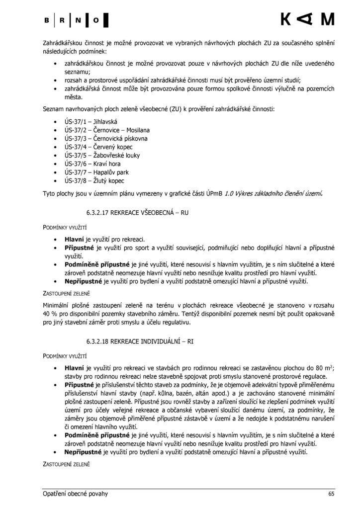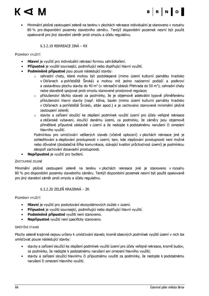 Výpis z dokumentu https://upmb.brno.cz/uzemni-plan-mesta-brna/vydany/ týkající se pouze zóny RX na Pískách a i na Svobodné (REKREACE-).